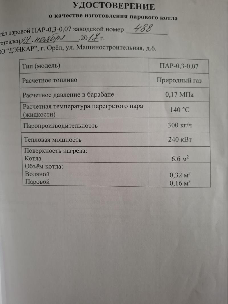 ПАРОВОЙ КОТЕЛ НИЗКОГО ДАВЛЕНИЯ ПАР-0,3-0,07